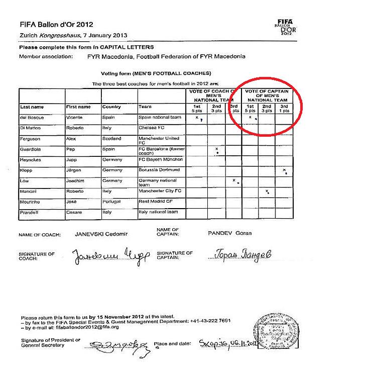 FIFAが主張するように、ファックスには、マケドニア代表監督と主将(パンデフ)の署名もあり、